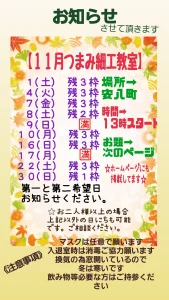 2025年11月つまみ細工教室日程
